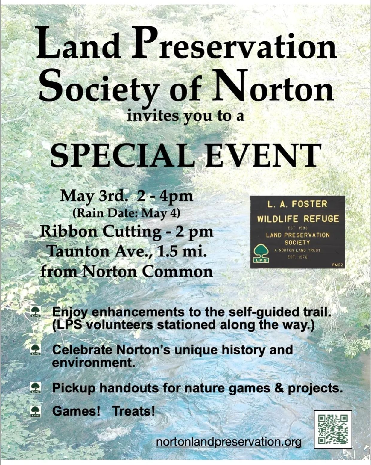 LPS received this Certificate of Appreciation from the Norton Select Board at the event at the L.A. Foster Nature Refuge. We invite you to take a walk on our newly expanded trail.